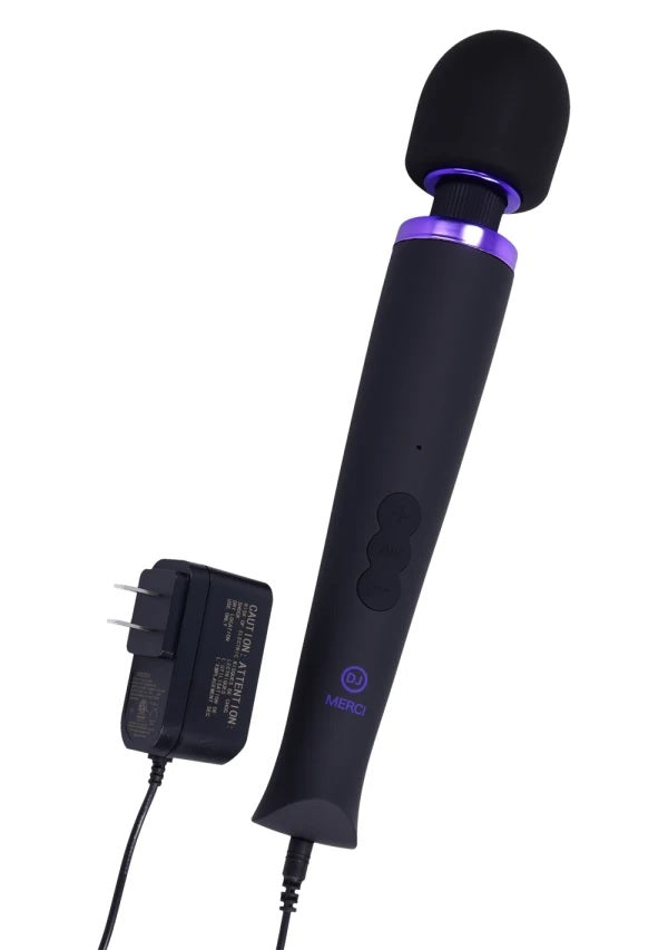 Work your magic. We cut the cord and made the well-loved Merci Power Wand more versatile From Doc Johnson. This classic Power Wand has 8 speeds and 8 vibration patterns, for 64 unique sensations. The Merci Rechargeable Power Wand is ready for every satisfying solo session or to tease your tied-down partner. It comes with a discreet storage bag, charging cord, universal power adapter, and is operable while charging.